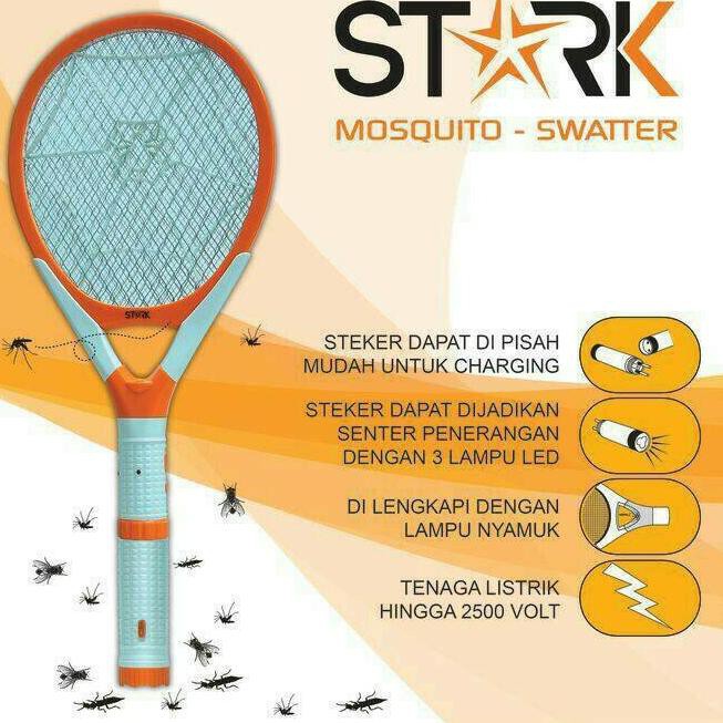 Termurah Stark Stk 002 Raket Nyamuk 3in1 Bisa Charge Senter Lampu Indikator